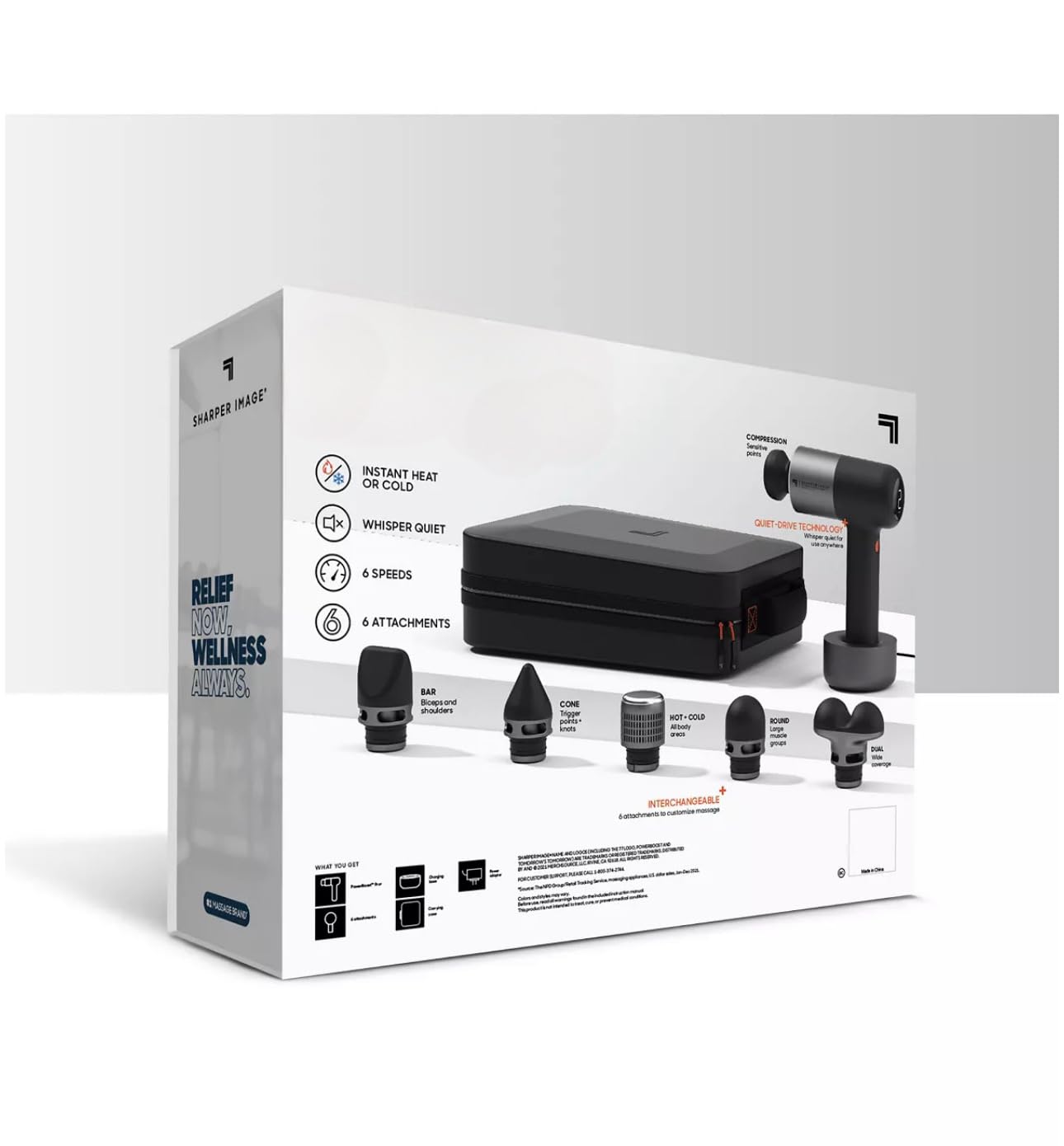 - - **Versatile Therapy**: A percussion massage gun offering both hot and cold therapy for effective muscle and tissue relief. - **Customizable Intensity**: Features 6 intensity levels, allowing for massages ranging from gentle to deep tissue. - **Ergonomic Design**: Designed with an ergonomic grip, an LCD display, and LED color lights for ease of use. - **Quiet Operation**: Operates whisper-quietly, ensuring a relaxing massage experience. - **Convenient Portability**: Rechargeable and includes a carrying case for easy use on the go. Temperature range: 38-115°F (3-46°C).